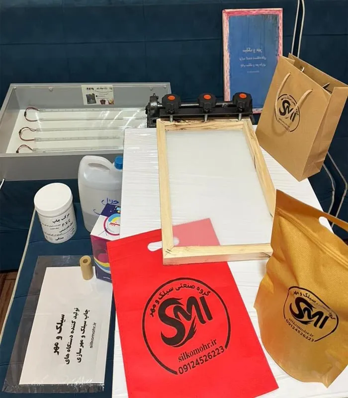 ست کامل تجهیزات و وسایل چاپ سیلک دستی شامل